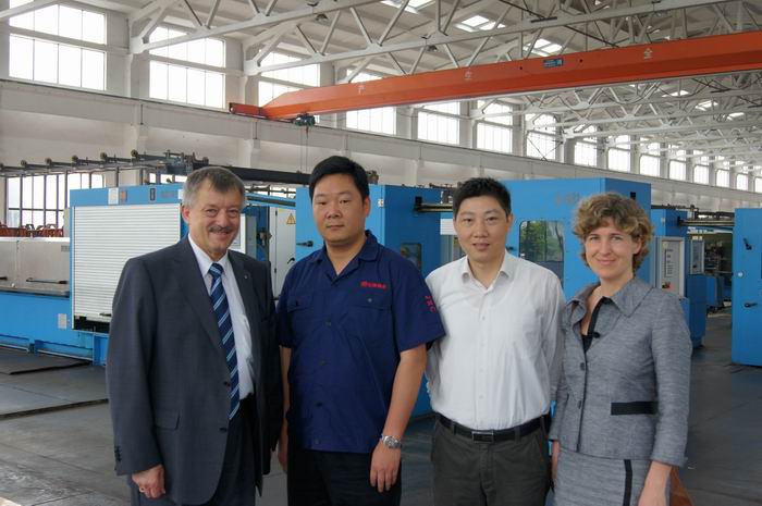 注:尼霍夫機械制造有限公司創(chuàng)始于1875年,作為歷史悠久的電纜設備制造廠商,在拉線、電鍍和束線等領域均處于世界領先地位。NIEHOFF與江潤銅業(yè)之間的合作源遠流長,始于九十年代初,國內首家引進了M85高速連續(xù)退火大拉設備,因為他的技術、品質、服務以及德國工業(yè)的嚴謹作風,促使我們從2000年起分批引進了120多臺套系列拉線、電鍍錫、電鍍銀、束線等先進裝備。二十年的歷程,二十年的風雨,我們攜手同行、共同成長。新型號設備的試用、使用意見反饋、改進完善,我們之間一直在進行著技術交流和互動。2004年,我們引進了國內首條WPT4000鍍錫生產線,經雙方工程師的通力合作,使92年產M85和新鍍錫機聯動生產成功,創(chuàng)造了亞洲地區(qū)首條拉線、電鍍聯動生產線。
