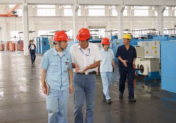 2010年6月8日上午,住友電工運泰克(無錫)有限公司生產、技術、品管一行6人來公司考察,先后參觀了SCR銅桿車間、復合銅線車間、銅絞線車間。我公司大規模的德國NIEHOFF設備和嚴格的工藝控制給考察代表留下了深刻印象。